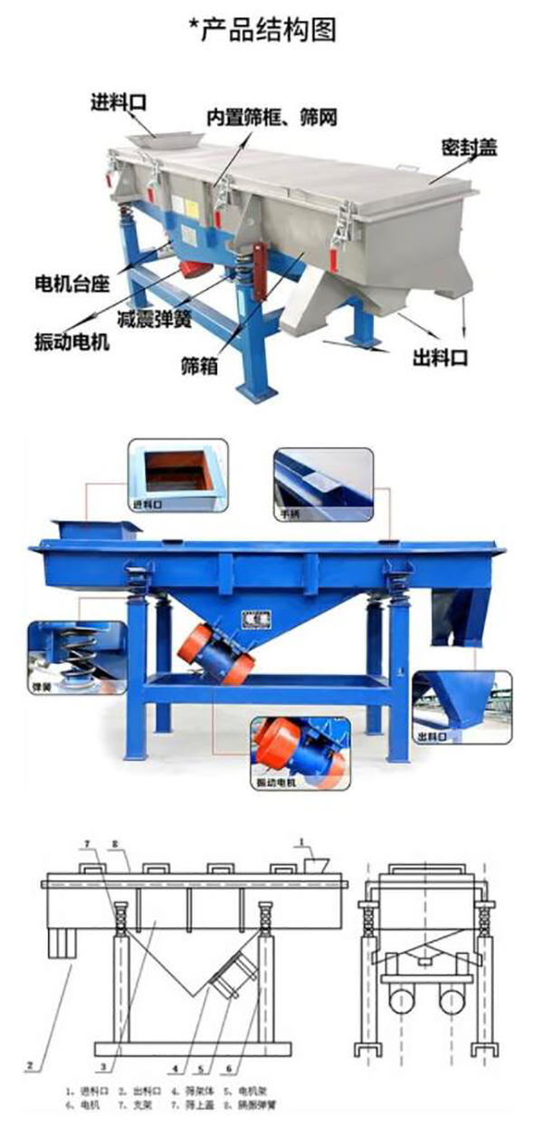 三層直線振動篩是一種新型師分設備, 振動軌跡為確員,是專為米石場師分科石設計的,也可供選煤、選礦、建材、電力及化工等部]作產品分級用。該篩機具有結構穩(wěn)定、激振力強、振動噪音小易于維修、堅固耐用等特點。